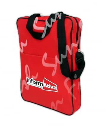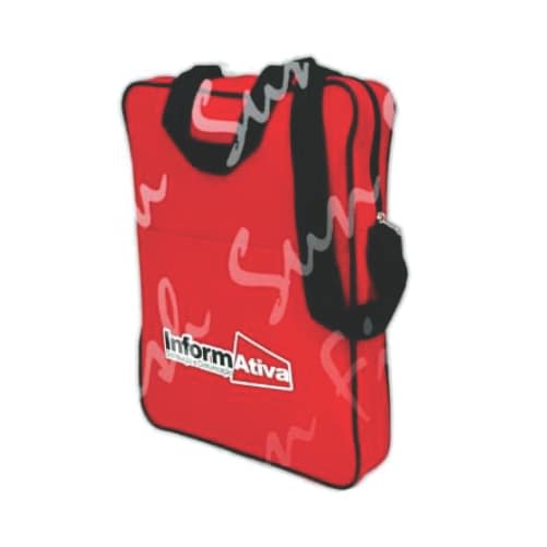 Pasta utiltaria em pé em tecido nylon600 com fecho em ziper, acabamento em vivo e com alça de ombro.